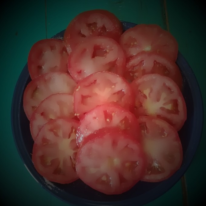 This Sunday’s dinner fare was not uncommon: fried chicken, mashed potatoes, green beans and a basket of biscuits. But then – as a final act before seating herself — my mother brought over a large platter of sliced tomatoes and placed them right in front of Grandpa.  We had eaten tomatoes before, of course, but I had never seen such a heaping platter full. Equally puzzling, the platter was presented to Grandpa Pharis, as if it had the Thanksgiving turkey and he would be doing the honors of carving it.